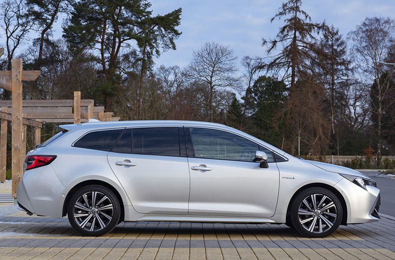 Rather than needing to be plugged in, the Corolla is a ‘self-charging’ hybrid estate car. Its battery is charged by the petrol engine – there is a choice of either 122PS 1.8-litre or 183PS 2.0 units – and through regenerative braking. This feeds kinetic energy back into the battery, creating electricity to help power the car.