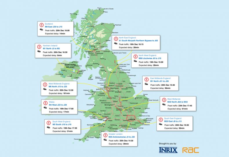 Research by the RAC and INRIX suggests Friday (December 21) will see the most congestion, as around 2.8 million vehicle-loads head off to see friends and family.